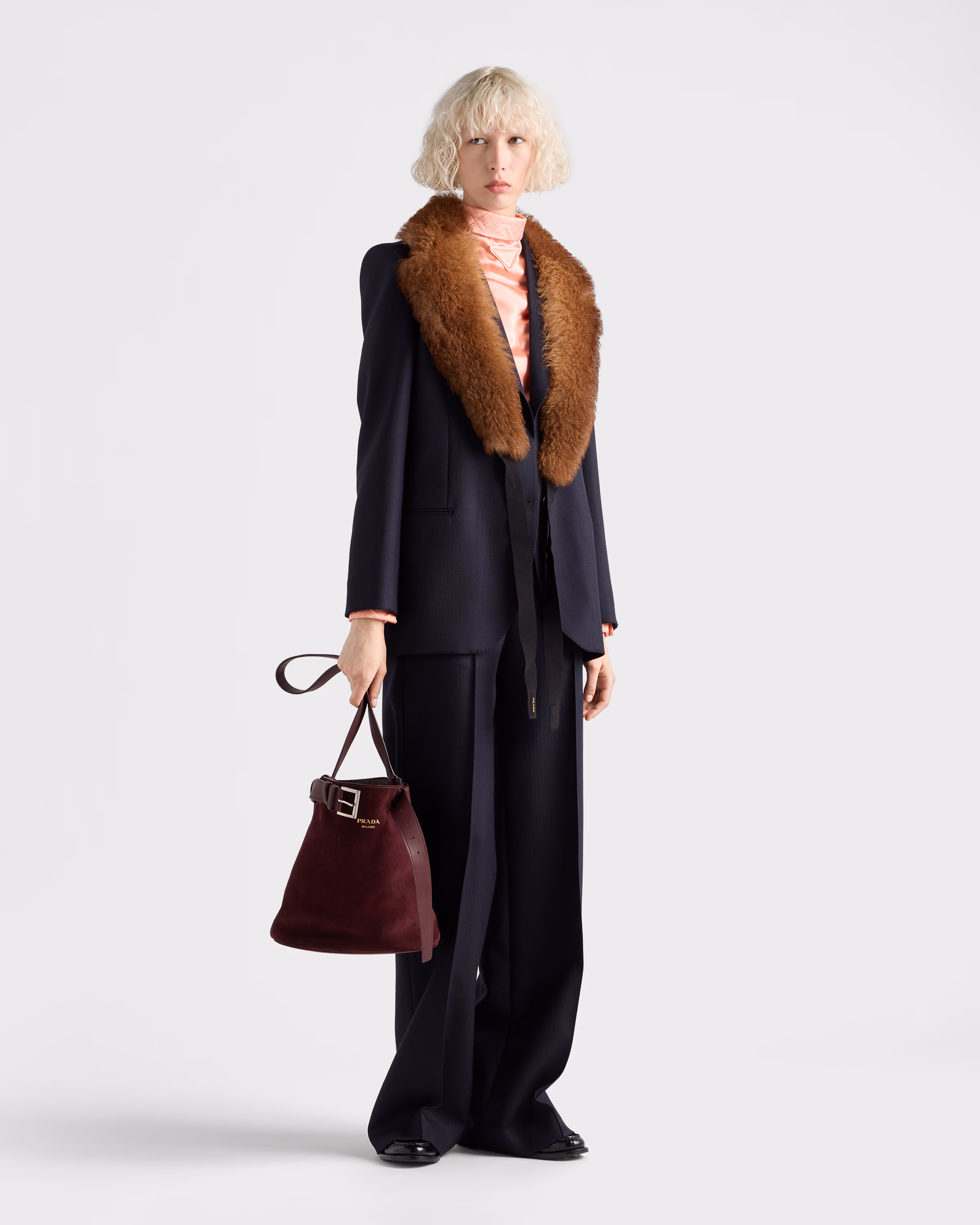 Vintage references define the character of this Miu Miu shearling stole. The sophisticated volume of the luminous fur, along with the refined chromatic variations finished by hand, embodies new femininity, suspended between irony and authentic bourgeois style.